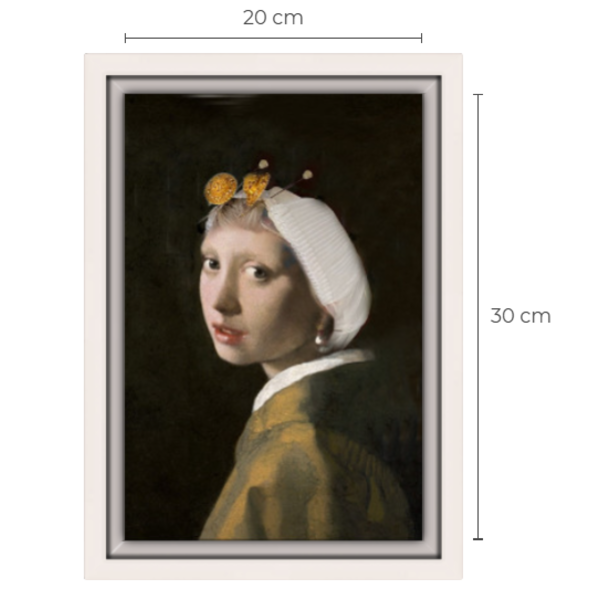 Einzigartiges Gemälde des Mädchens mit der Perle in Tracht! Dieses Mädchen mit Perlenohrring in traditioneller Tracht aus Scheveningen wurde speziell für den Museumsshop Den Haag angefertigt. 20x 30 cm im weißen Backrahmen