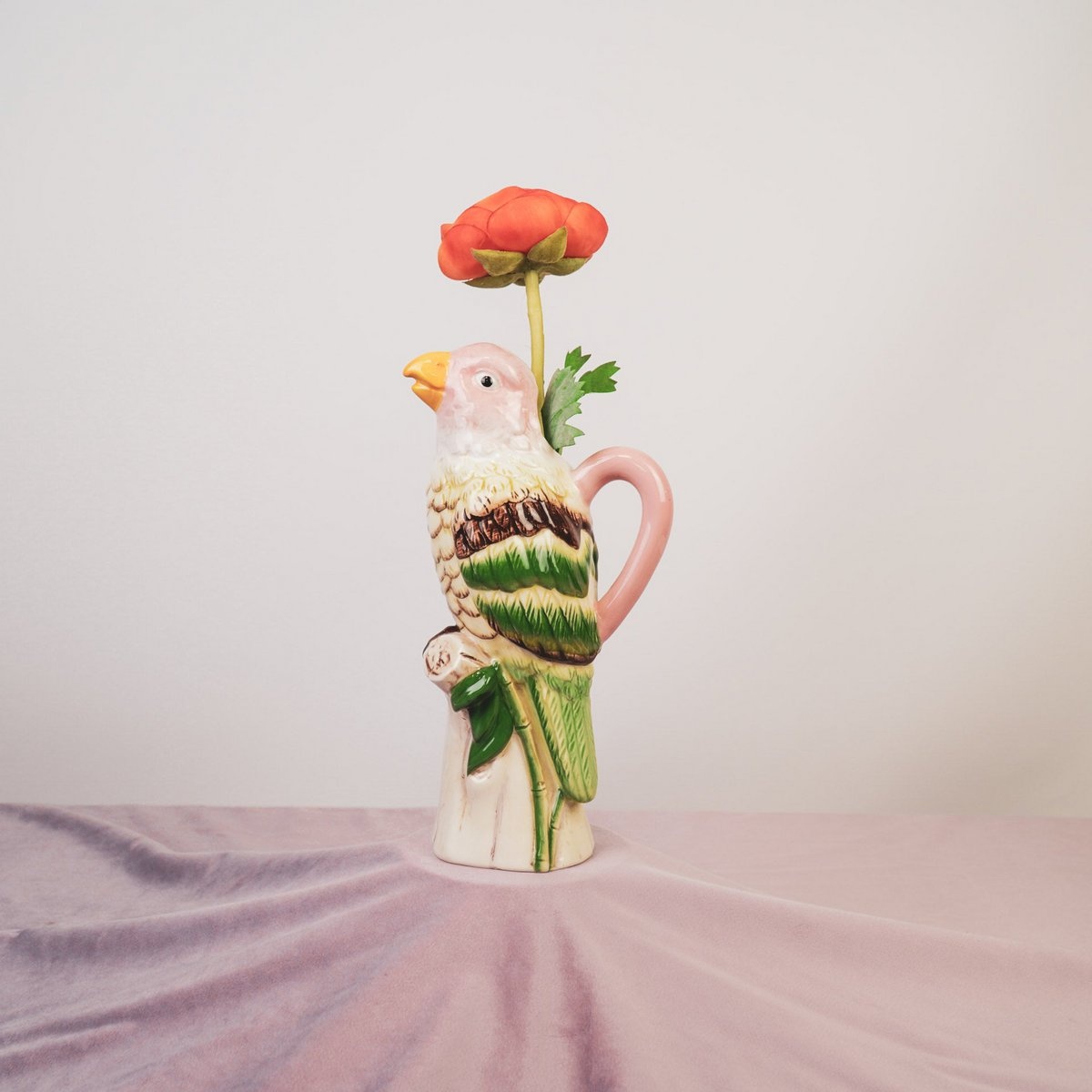 Diese Vase ist inspiriert von Melchior d'Hondecoeters Gemälde „Die Menagerie“ im Rijksmuseum, das für Wilhelm III. Palast Het Loo bestimmt war. Sie hing über der Tür im Privatbüro des Königs. Material: rosa Dolomit. Maße: 12 x 9 x 23 cm.