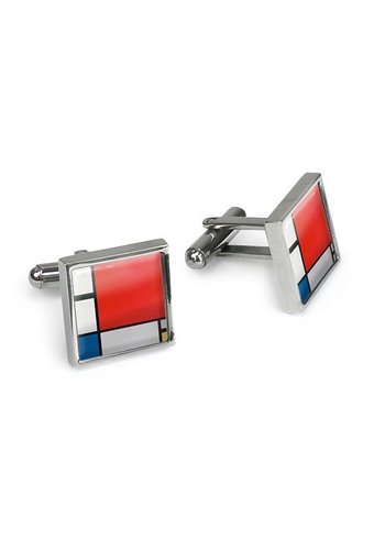 Beaux boutons de manchette en acier inoxydable avec design Mondriaan. Les boutons de manchette sont emballés dans une boîte cadeau luxueuse.