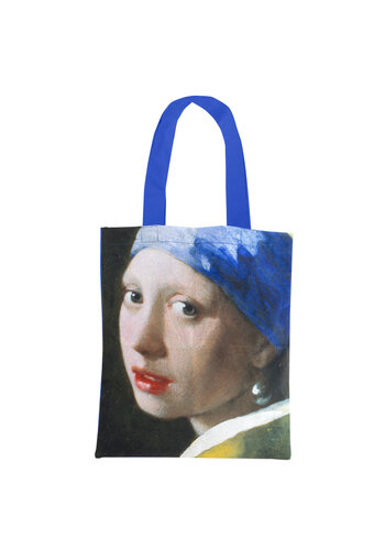 Sac en coton avec la Jeune Fille à la Perle de Vermeer. Le sac a de longues anses. 35x46cm